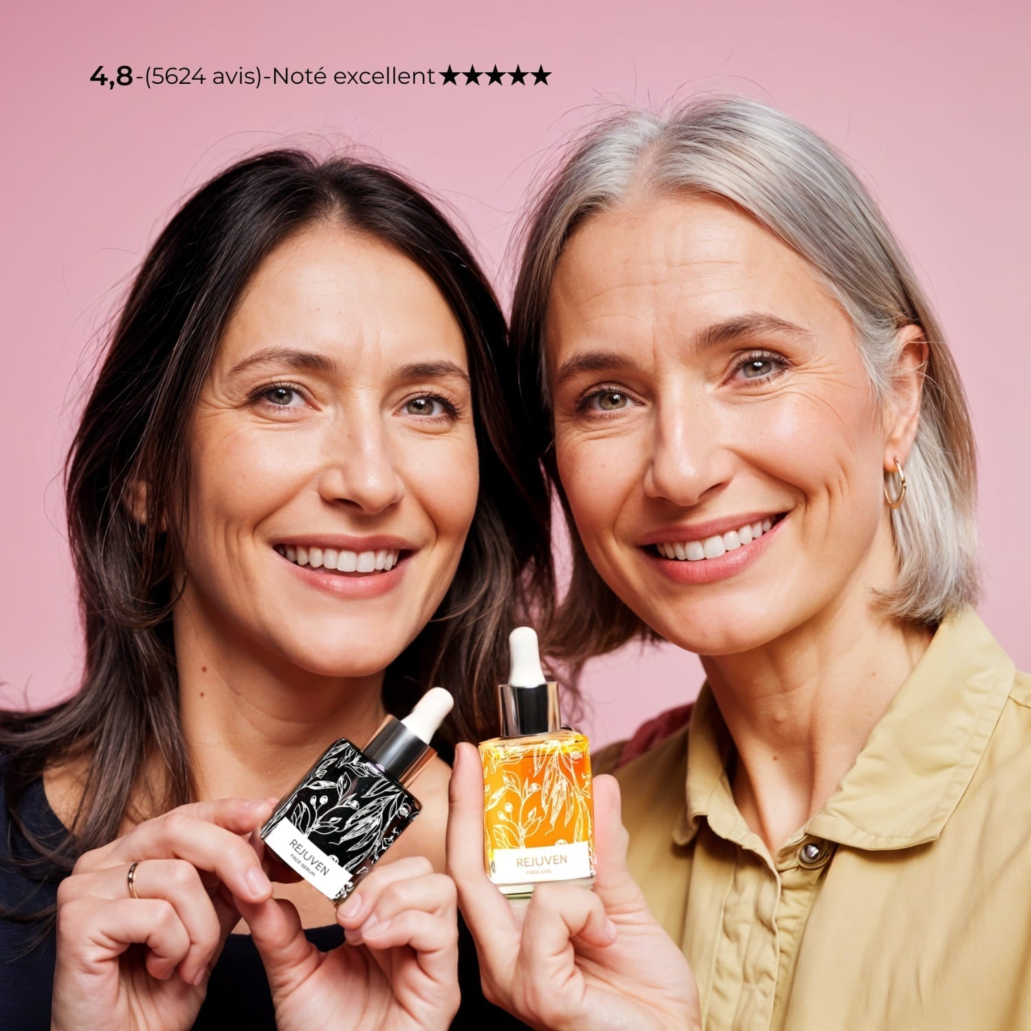 Résultats visibles et durables : En maintenant votre routine avec Rejuven, vous optimisez l’efficacité et les résultats anti-âge.